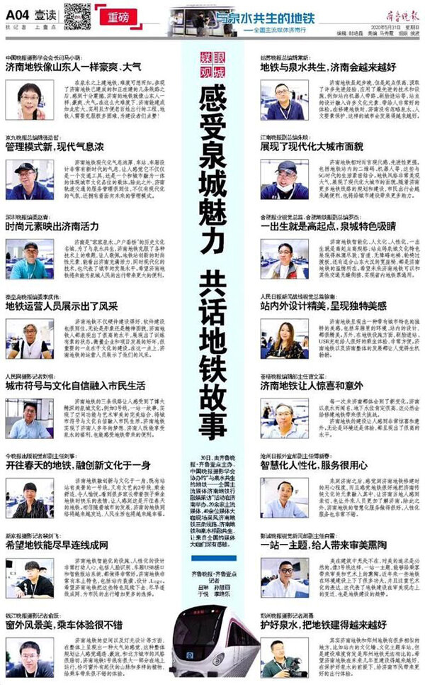 5月30日,由齐鲁晚报·齐鲁壹点主办、中国晚报摄影学会协办的“与泉水共生的地铁——全国主流媒体济南地铁行融媒采访”正式启幕。20余家主流媒体40余位主流媒体记者齐聚泉城,用镜头和文字讲述地铁和泉水的故事。